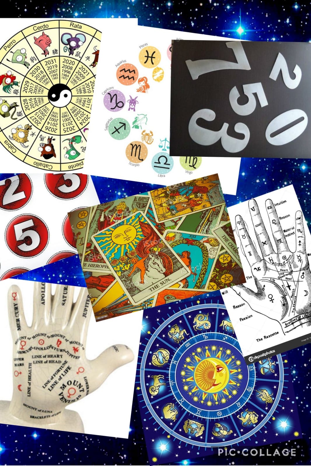 Utilizando quirometria, zodiaco del alma, numerología, astrología y Tarot.
